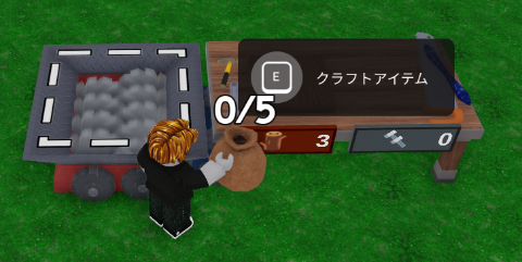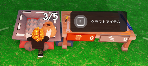 では、クラフト画面を開いてみましょう 作業台の方へ向いてEキーを長押ししてください