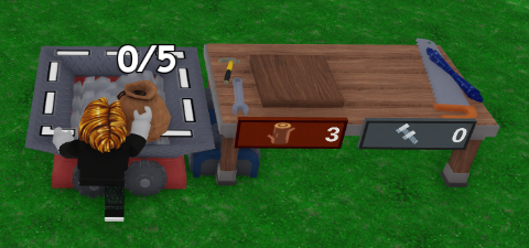 作業台の手前に表示されているログの数が0→3へ変わりましたね ぱっと見でいくつ材料が投入されているか確認できる仕様となっております