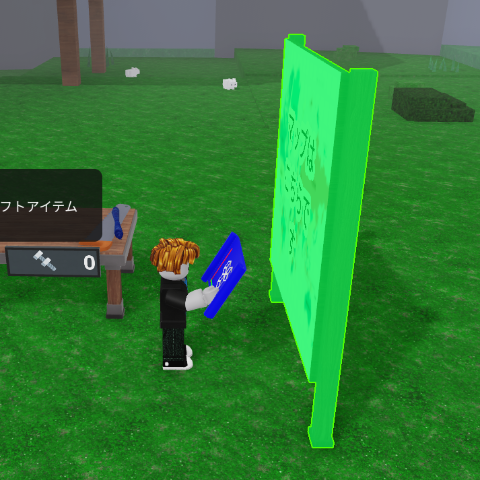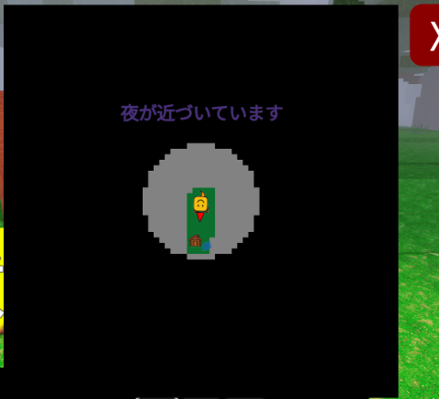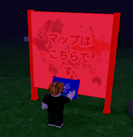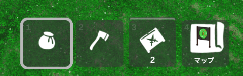 画面下側の所持品の一番右にある「マップ」をクリックすると緑色の看板が出てきます