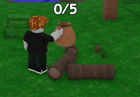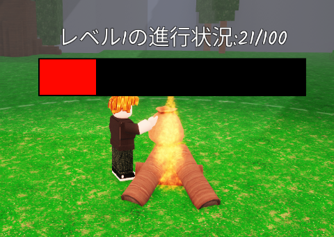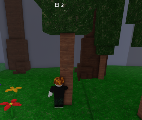 フィールドを歩くと細い木が見つかります 木に近づいて斧を振り下ろしてください 初期斧だと13回で木を切り倒すことができます