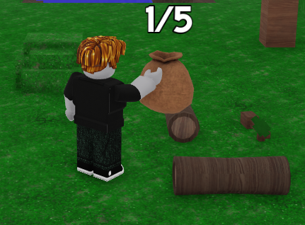 袋にアイテムを格納すると1/5と表示が変わります ※初期袋は5個アイテムを格納することができますので、残り4個アイテムを格納できます